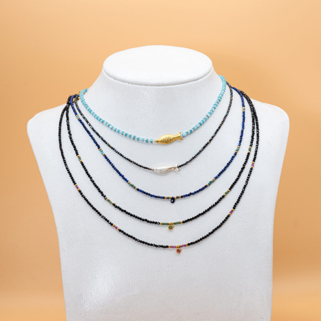 Ein kleines Sortiment an selbst designtem und – gefertigten Perlen – und Edelsteinketten!