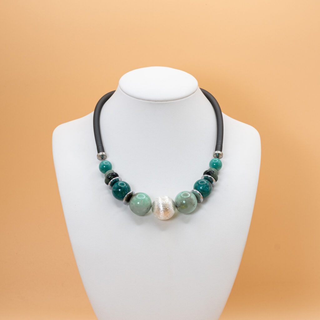 Schmuckstücke aus Perlen, Edelsteinen und Silber.